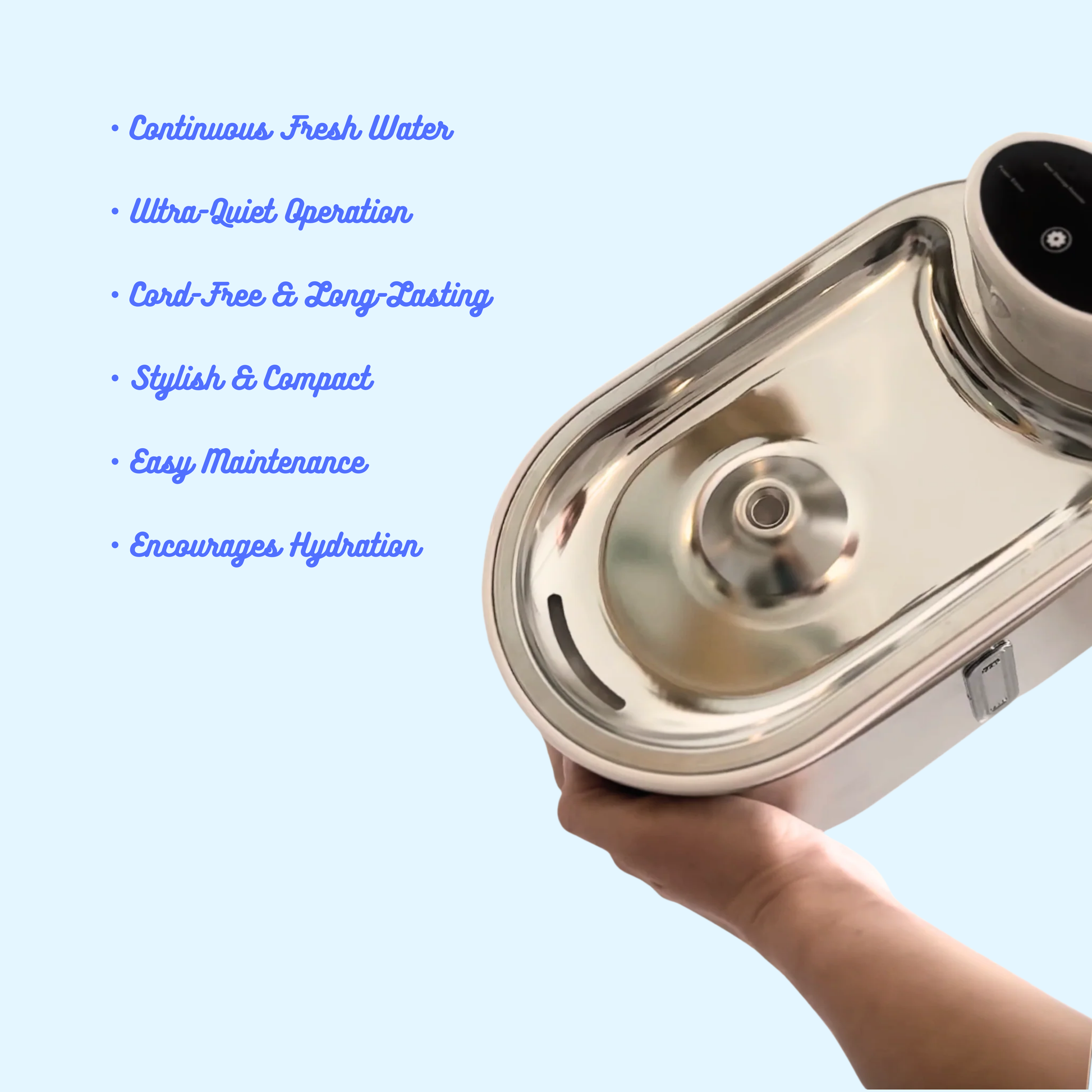 Keep your pets hydrated with HydroFresh! It provides continuous fresh water, operates ultra-quietly, and is cord-free with a 3L capacity lasting up to 30 days. Stylish, compact, and easy to clean, HydroFresh promotes healthy hydration for your furry friends.